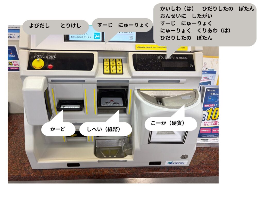 👦🏻「券売機に点字がついてるよ。目が見えない人のためのものだね。」
