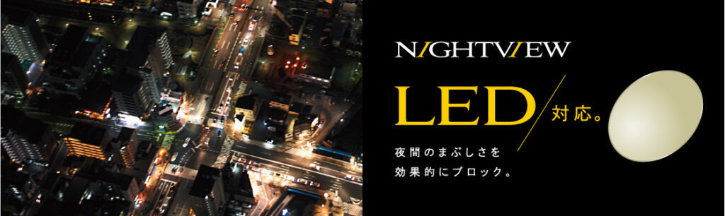 夜間の運転中、対向車のライトやミラーの反射にまぶしさを感じる方におすすめ。ディスチャージライトに加え、近年ヘッドライトの主流となっているLEDにも対応し、2つの光源の波長を効率よくブロックすることが可能です。光を抑えながら、暗所視比視感度の高い波長510nmの透過を高めることで視界を暗くせずにまぶしさを抑えます。